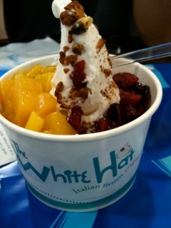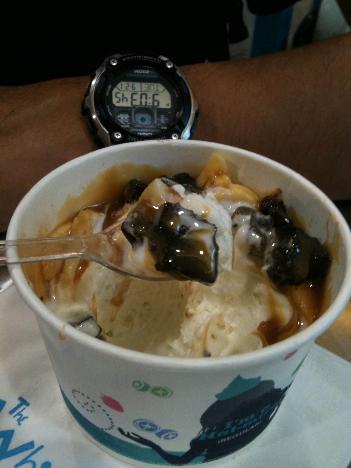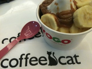 the idea for this blog entry came out after trying white hat’s monkey hat combo. monkey hat is yoghurt with generous toppings of banana, fudge bar and caramel sauce.