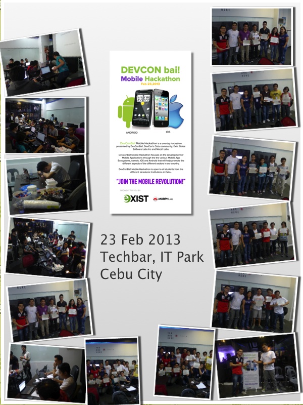 This geeky event would not have been possible without the tireless cooperation of the Exist Mobile Dev team ( PJ Parreno, Mahkie Madrid, Jen Curativo, Xian Elim) and DevCon Bai volunteers.