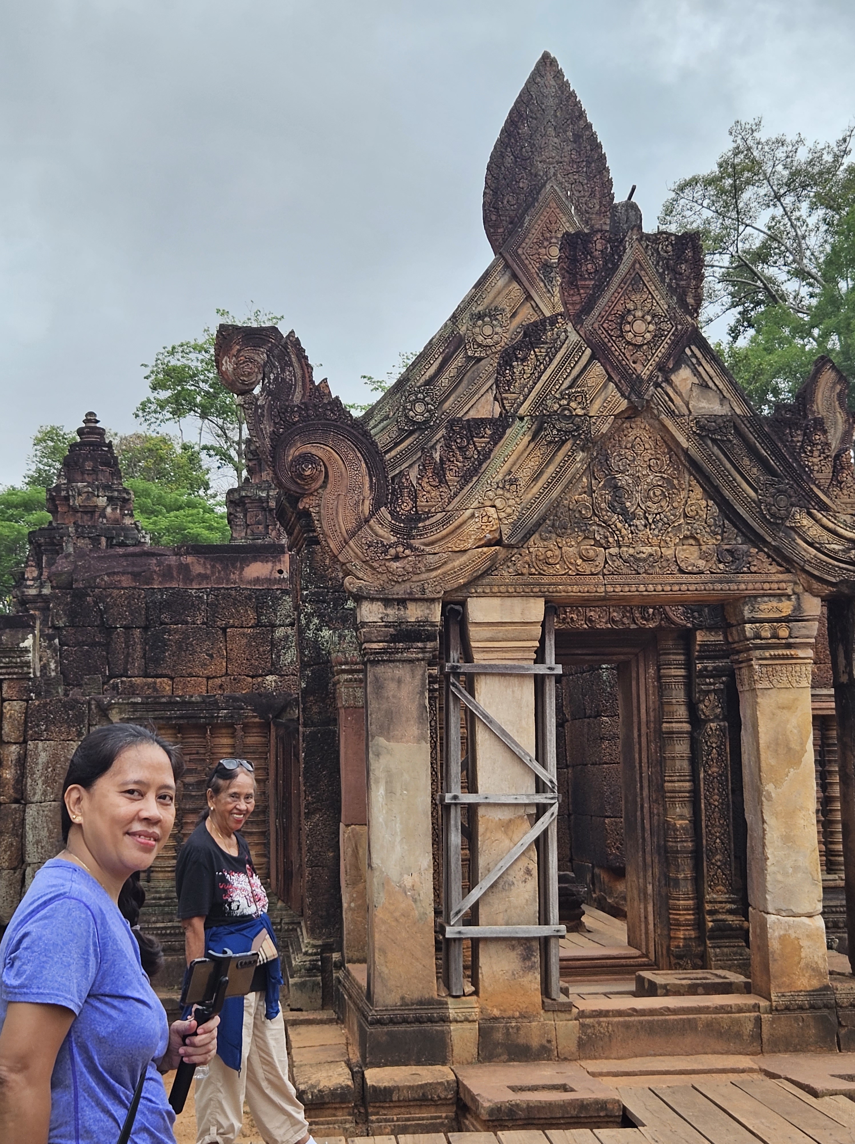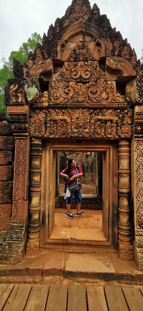 The pink temple. The lady temple. However it is called, it was indeed a very pretty temple. Banteay Srei means the citadel of women. Our tuktuk driver and tour guide said it was built by women as evidenced by its height and the intricateness of the carvings in the walls of the temple. The intricate carvings though are largely made possible due to the red sandstone that is built from. While it was roughly 35km from Siem Reap, it was well worth the drive.