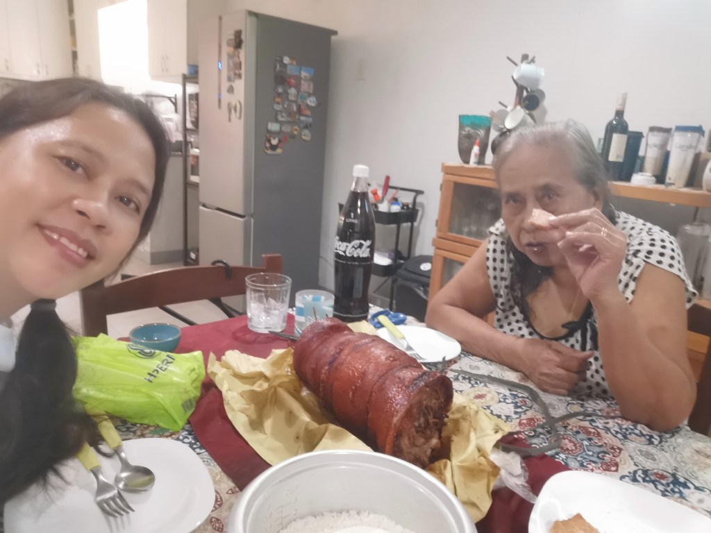 I remember always finding her sitting by the window of her 2-story house, people watching to while the time away. I remember the distinct smell of whiteflower, a bottle of which was always in one of her pockets. I remember her usual ensemble – sleeveless duster with 2 pockets and usually dark colored. I remember her offering her prized humba and yellow mangoes during our visits (although she usually would ask for my dad and offer him those glorious humba). Her humba though was just legendary. The pork skin so soft it almost melts in your mouth. The fat all jiggly and soft but never “luod”. To this day, I have not eaten one as heavenly and glorious as my lola’s humba. I remember her generosity while being careful not to be a burden to us. I remember how happy we were when she finally agreed to go to our home not knowing it was her last day. I think she wanted to see for herself that we were all good and taken cared of.